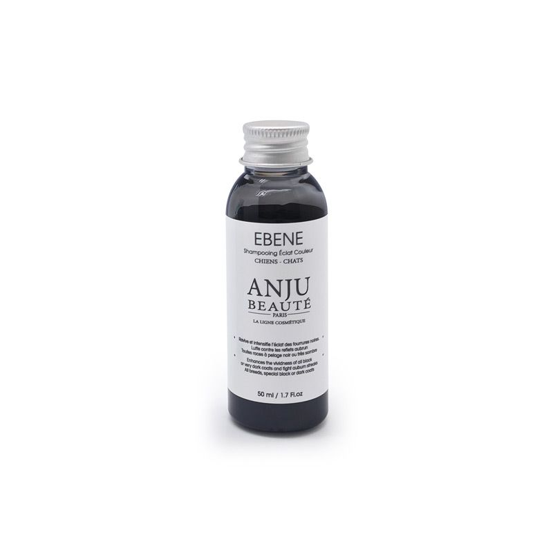 De Ebene shampoo van Anju Beauté is specifiek ontwikkeld voor de (zeer) donkere en zwarte vacht. Regelmatig wassen met Ebene shampoo voorkomt het bruin worden van de zwarte vacht. De exclusieve formule van Ebene shampoo is speciaal ontwikkeld om dankze de speciale formule de zwarte vacht of vachten waarin zwart voorkomt te intensiveren en van een onvergelijkbare glans te voorzien. Al tijdens het wassen en drogen beschermt deze shampoo zowel de vacht als de kleur. De toepassing van Aloë Vera voorkomt in combinatie met een speciaal UV filter het bruin worden van de zwarte (donkere) vacht. Ook bij deze shampoo geldt dat resultaat pas na meerdere wasbeurten wordt geboekt hetgeen betekend dat er regelmatig met deze shampoo gewassen dient te worden. Ebene shampoo gelijkmatig op de natte vacht verdelen en goed inmasseren. Shampoo 2 tot 5 minuten laten inwerken en dan goed uitspoelen. Op bruine plekken in de donkere vacht mag deze shampoo langer intrekken. Deze shampoo dient te worden gebruikt na de reinigende shampoo. Verdun 1:5